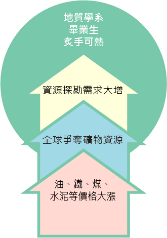 隨著原物料價格的大漲,全球掀起礦物資源爭奪戰,使得地質學系畢業生的出路逐漸熱絡。