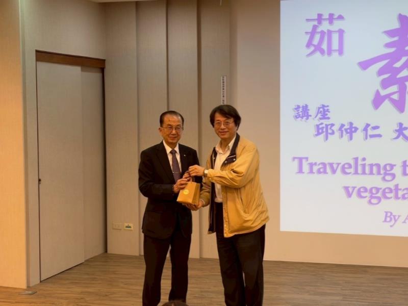 為推廣健康永續飲食理念並拓展學生國際視野,佛光大學健康與創意蔬食產業學系系學會於今(25)日舉辦「茹素走天下」專題講座,邀請我國前資深外交官、蔬食大使邱仲仁蒞校演講。活動吸引約200位師生熱烈參與,氣氛熱絡。 講座開始前,佛光大學校長趙涵?特地與邱仲仁大使進行會面交流,就蔬食文化國際推廣及教育合作等議題深入交換意見,展現學校對於蔬食教育與國際連結的高度重視。 本場講座由副校長兼健康與創意蔬食產業學系主任詹丕宗主持開場,詹副校長表示,蔬食不僅是飲食選擇,更是結合健康、永續與文化的重要產業趨勢,期望透過大使的國際經驗分享,讓學生理解蔬食在全球發展中的多元價值。 邱仲仁大使以其豐富的外交經歷為主軸,從其在非洲及歐洲各國推動蔬食文化的歷程娓娓道來,分享如何透過外交平台推廣蔬食理念,並結合當地文化進行交流與實踐。他指出,蔬食不僅有助於健康,更是推動永續發展的重要力量,在不同國家亦展現出多元的文化樣貌與接受度。演講內容涵蓋外交工作中的精彩故事、跨文化溝通經驗,以及蔬食在國際交流中的實務應用,讓在場師生深受啟發。大使亦強調,未來蔬食產業具有高度發展潛力,鼓勵年輕世代結合專業與創新,投入健康與永續相關領域。會後大使並把演講鐘點費回捐給蔬食系,作為推動蔬食系發展與蔬食教育推廣之用。