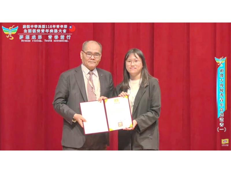 嘉義大學農藝學系四年級許云瑈同學,憑藉優異的學業表現與長期投入校內外服務的傑出事蹟,榮獲中國青年救國團「115年大專優秀青年」全國代表殊榮,於3月29日受邀到臺北參加「全國優秀青年表揚大會」,展現嘉大學子允文允武、關懷社會的卓越風範。 許云瑈同學在校期間表現全面且亮眼。在學業方面表現優異,長期維持良好成績,並獲社區獎學金肯定,展現認真進取的學習態度與自我精進精神。在體育活動方面,擔任農藝系女子排球隊副隊長,協助規劃球隊訓練內容,積極凝聚團隊向心力,強化團隊合作精神,展現優秀領導能力與責任感。在班級與系務服務方面,許同學曾擔任班級幹部,主動協助處理各項班務工作,促進師生與同學間良好溝通;此外,亦擔任農藝系學會活動長,統籌策劃多項系上重要活動(如:農藝週等),從活動發想到執行皆親力親為,帶動系上團結氣氛,提升學生參與度與向心力,深獲師生肯定。 在專業實踐與社會參與方面,許云瑈同學亦積極投入食農教育推廣,於2024年11月參與雲林縣斗南鎮農會舉辦的「幸福島嶼」活動,協助推廣有機友善農特產品,倡導友善耕作理念與永續環保觀念,透過實際行動支持在地農業發展,落實食農教育精神。許同學亦長期關懷社會、投入公益服務,曾於2024年農曆年前前往高雄市大寮區溫仁宮協助辦理寫春聯活動,以實際行動服務社區、傳遞年節溫暖,展現青年學子回饋社會的熱忱。 此次榮獲救國團全國大專優秀青年代表,不僅是對許云?同學多年努力的肯定,更是對嘉義大學深耕全人教育成果的最佳見證。許同學表示,未來將持續發揮所長,在更寬廣的舞台上發光發熱,為社會注入更多正向力量。