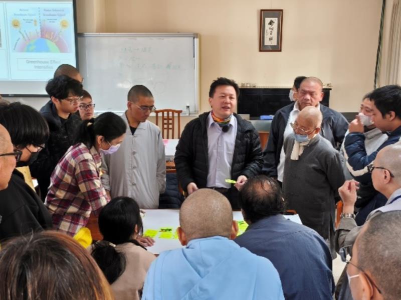 佛光大學佛教學系於「16 2 多元學習週」中,特別邀請永續發展辦公室執行長周鴻騰副教授,為佛教學系量身打造跨領域的 EMI(English as a Medium of Instruction)永續課程,培育具備國際視野與永續素養的現代佛教人才。課程以系統思考與視覺化排序卡導入氣候變遷教學,引導學生理解從碳排放到極端氣候的因果關係,建立淨零排放與防災調適的整體觀。 進一步結合整全實踐典範(Wholeness-Praxis)四象限,帶領學生從科學、倫理、美感與實踐四個層面,解析永續行動背後的思維路徑。課程核心亮點在於深度融通星雲大師「人間佛教」與聯合國「地球憲章」,透過「三好、四給、五和」及「心保與環保」,引導學生理解佛法智慧與全球永續倫理的對應關係,勾勒出從內在修行走向外在行動的實踐藍圖。 曾稚棉專案副系主任表示,當代佛教教育不僅著重經典與思想研究,更應回應社會與環境的共同課題。本次特訓週透過跨域課程設計,讓學生理解佛教慈悲與緣起思想與永續發展的深刻連結,並在學術、價值與行動層面培養環境關懷意識,具體回應 SDG 4(優質教育)、SDG 13(氣候行動)、SDG 15(陸域生態)與 SDG 16(和平正義)。 學生回饋指出,透過排序卡與系統思考的實作,能清楚理解氣候變遷的因果結構,並將 EMI 學習轉化為實際判斷與行動思考。同時,藉由對照人間佛教與地球憲章,體悟永續不僅是技術問題,更是內外合一的倫理與心靈實踐。曾老師總結,本次 EMI 永續教育課程成功串連科學理解、倫理反思與行動實踐,形塑佛教學系具前瞻性的永續學習模式。