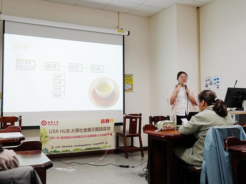 圖02.南華大學辦理山茶文化體驗,邀請「嘉木居」店長林菀亭進行專題演講,介紹各種茶類及製成差異。