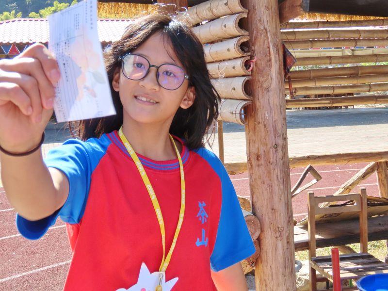 圖7:茶山國小學童戴著製作的勇士帽及黑熊項鍊闖關,象徵守護神陪伴他們。