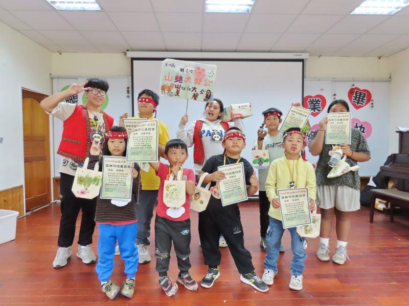 本次課程亦涵蓋黑熊保育、動物足跡辨識及鄒族文化介紹,透過戲劇與繪本方式演繹文化故事,促進學童與大學生之間的互動學習,深化對鄒族文化意涵的理解。營隊亦規劃結合環境保護概念的大地遊戲,引導學童在闖關活動中學習飲水思源、珍惜自然資源與守護環境的重要性,並在闖關過程中,配戴勇士帽及黑熊項鍊,象徵學童的守護神陪伴他們一起度過關卡。
