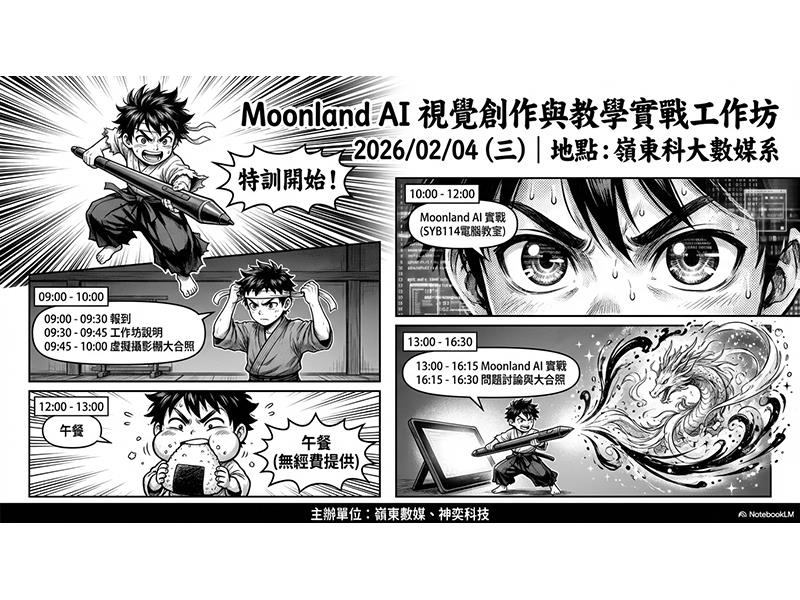 為協助國內教師掌握生成式人工智慧(Generative AI)與虛擬製作等數位創作核心技術,嶺東科技大學數位媒體設計系於寒假期間,秉持善盡大學社會責任(University Social Responsibility, USR)的理念,與神奕教育公司合辦二場AI生成內容實戰工作坊。這二場活動分別聚焦於「Moonland.AI視覺創作與教學實戰」以及「虛擬製作與AI視覺動捕實務」,共吸引近百位來自全國各級學校的教師參與,為教育現場引入前沿技術與教學策略。