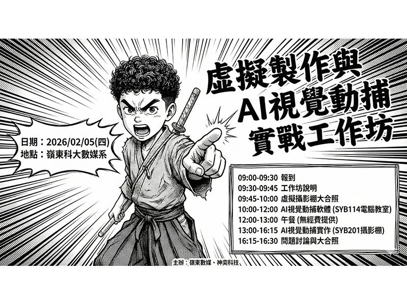 嶺東科大數媒系黃俊雄主任表示,生成式AI與虛擬製作等數位技術已成為教育與創作不可逆的趨勢,而教師作為學習與教學的關鍵推手,需要具備不斷精進的數位素養與技術應用能力。嶺東數媒選擇在寒假期間舉辦工作坊,除了回應教育現場對AI技術學習的急迫需求,更希望透過開放式的研習與交流,讓教師能在假期時間持續提升專業力,把最新科技帶回校園教學。
