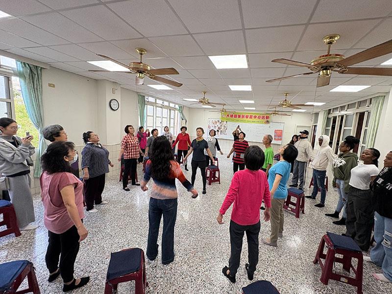 圖02.南華大學國企學程走入社區,國際生與大林長者青銀共學。