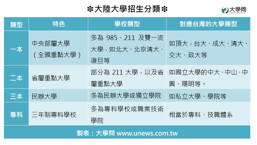 目前,臺灣高中畢業生只要「學測國、英、數A或B任一科成績達均標」即可以申請大陸大學,要怎麼在這些陸校中選擇呢?「大學問」(www.unews.com.tw)整理出四大入門攻略,帶你逐步聚焦申請方向。