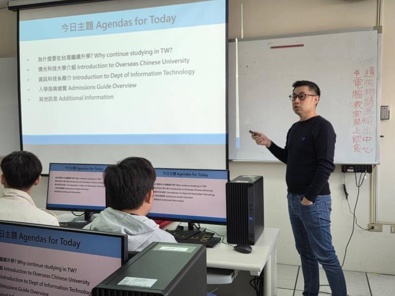 活動中亦由資訊科技系進行系所介紹,說明課程以人工智慧(AI)、大數據分析及物聯網(IoT)應用為核心,培養學生將資訊科技實際運用於產業與生活場域。資訊科技系主任劉柏伸表示,系上教學重點不僅在於程式技能培養,更著重於問題解決與跨域應用能力的建立,透過產學合作、專題實作與實習制度,協助學生在就學期間逐步累積實務經驗,提升畢業後銜接職場的即戰力。