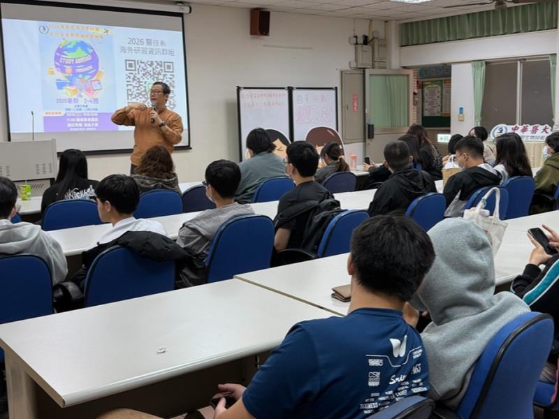 中華醫事科技大學醫學檢驗生物技術系於3月18日舉辦教育部「學海築夢」海外研修說明會,吸引二技三年級、四技一至二年級及五專二、三年級學生踴躍參與,現場座無虛席,氣氛熱絡,展現同學對海外學習的高度興趣。
