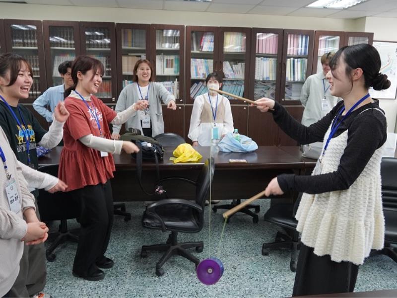 今年適逢中華大學與日本宮城教育大學自 311 大地震後締結姊妹校滿 15 週年,雙方情誼深厚,本次來訪更具紀念意義。宮城教育大學師生近日抵達中華大學,由應用日語系學生安排一系列臺灣文化體驗活動,包括老鷹抓小雞、梅花梅花幾月開、扯鈴與釣酒瓶等傳統遊戲,並品嚐乖乖、可樂軟糖、大豬公等在地零食,讓日本學生全方位感受充滿特色的臺灣文化與熱情。