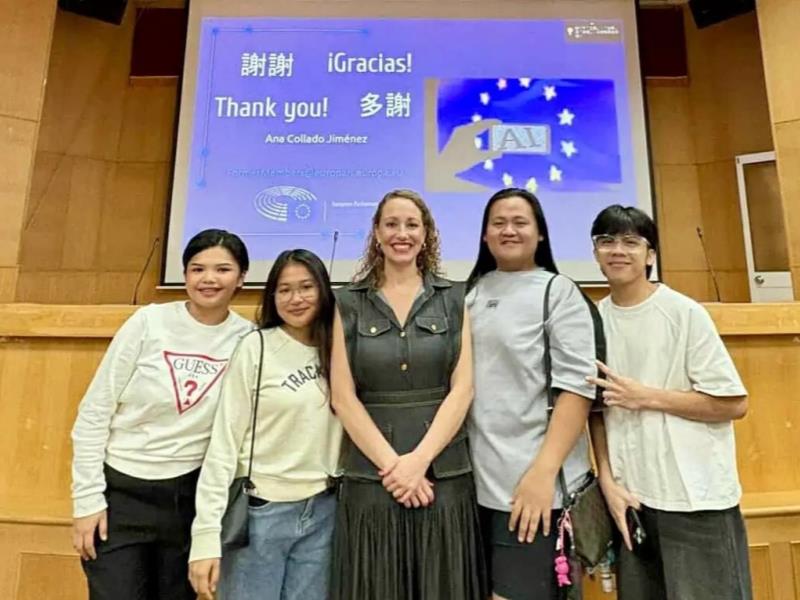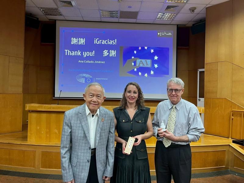 在專題演講中,Collado 深入解析歐盟人工智慧策略布局,並聚焦於最新制定的《歐盟人工智慧法案》(EU AI Act)。她指出,歐盟 27 個成員國正透過立法規範 AI 系統的倫理與透明性,以確保創新與人權並行。講座最後的問答環節互動熱烈,顯示台灣學界對歐盟AI治理模式及其對全球創新生態的影響高度關注。