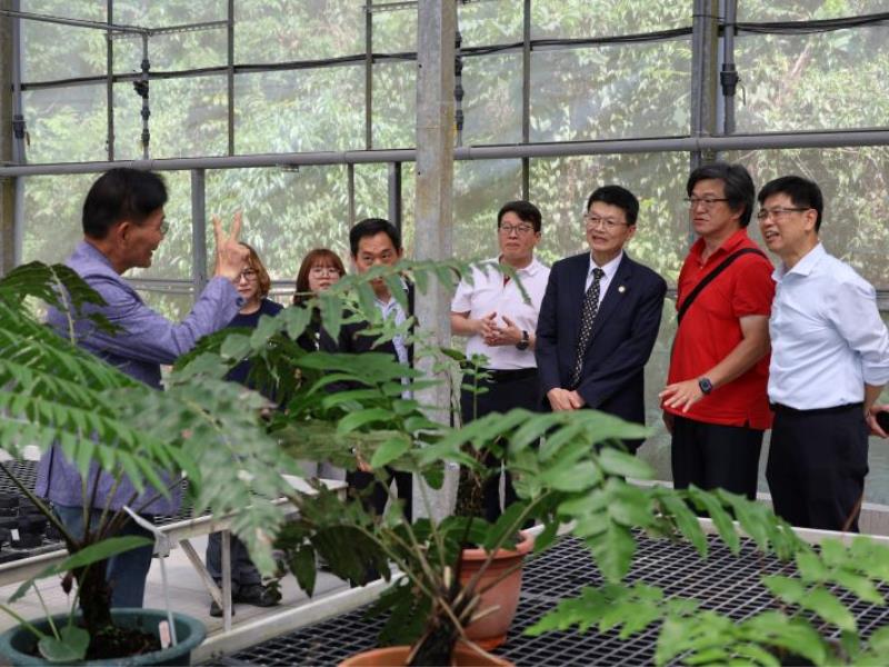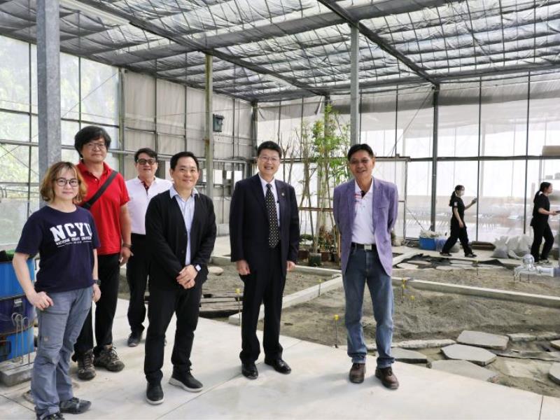 圖6:林翰謙校長與農學院師長巡視實作場設施,了解教學空間配置與施工實作情形。
