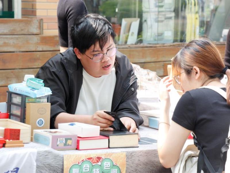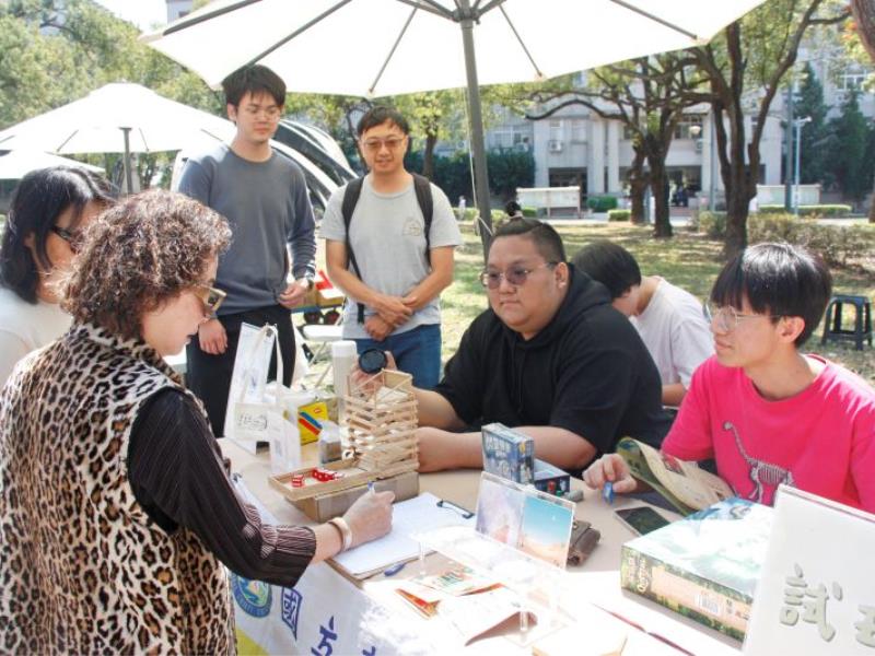 圖2:「聯合特色週」工作人員向參與同學說明攤位特色。
