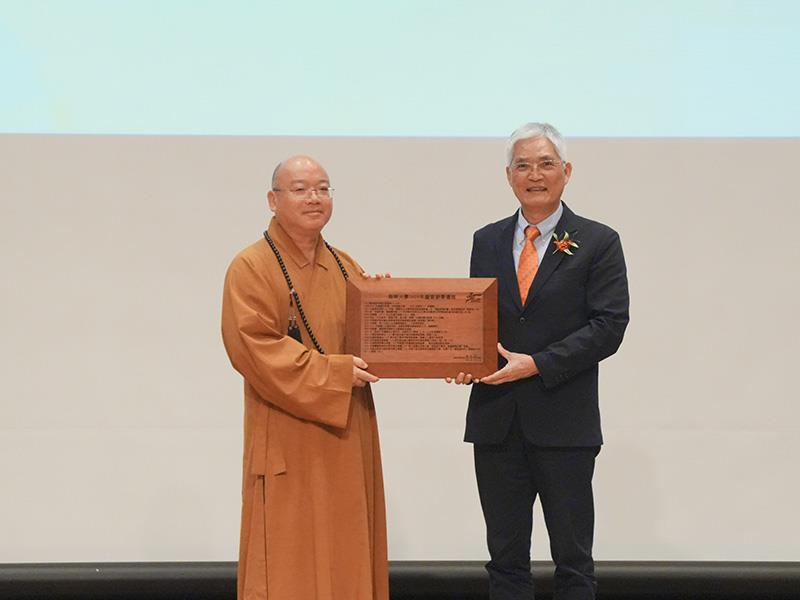 為展現南華師生豐碩的成果,典禮中頒發特聘教授聘書、傑出學術研究貢獻獎、學生校外實習合作機構績優獎、產學績優獎、連續四年獲就業學程補助之系所、教學優良教師及為校爭光獎等獎項,亦表揚服務年資滿15年、20年、25年、30年之教職員工,充分彰顯該校在「教學、研究、實務」三大面向的均衡發展。校長高俊雄亦向董事長呈獻卓越的辦學績效,並致贈以雲為形、以星為心之「南華30‧星耀雲起」竹編禮作,象徵對星雲大師深切的思念與感恩。