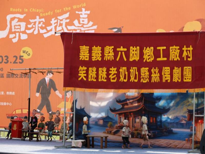 圖2:成果展特別邀請嘉義縣六腳鄉工廠村「笑瞇瞇老奶奶懸絲偶劇團」進行精彩演出。