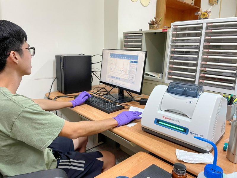 圖2:嘉大農藝系林沛倫同學運用FTIR分析塑膠微粒之吸收光譜變化,以判斷其化學結構改變。