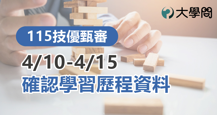 報名115學年度「技優甄審」的考生,若有學習歷程檔,請於115年4月10日10:00起,上網查看自己的修課紀錄、課程學習成果及多元表現等學習歷程檔資料有無錯誤。系統開放至4月15日21:00為止,請同學一定要上網確認自己的學習歷程資料,若有錯誤需立即向就讀學校反映,以免影響自身權益。