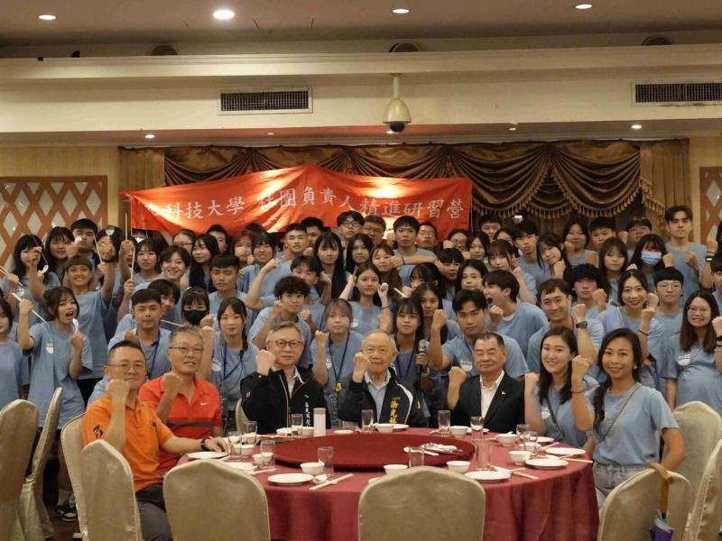 董事長陳伯濤(前排中)與師長貴賓親臨現場勉勵社團未來幹部