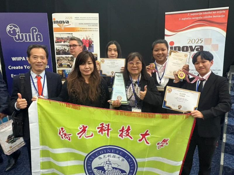 2025年克羅埃西亞國際發明展暨發明競賽(International Exhibition of Inventions Croatia 2025)9月25日至27日在首都薩格勒布(Zagreb)盛大登場,今年共有來自25國、超過355件創新發明作品參與角逐,競爭激烈。僑光科技大學生活創意設計系在系主任李世珍副教授帶領下,師生共同組成六人研發團隊,最終以「三件參賽作品全數獲獎」的佳績亮相國際舞台,勇奪3面金牌、3座展場特別獎與1座大會特別獎,締造百分百得獎率,堪稱台灣之光。