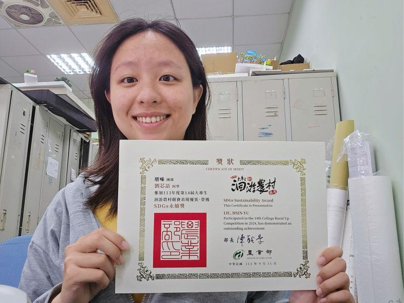 圖2:景觀系劉同學獲得第十四屆大專生洄游農村競賽SDGS永續獎,獲得競賽成就獎學金補助。