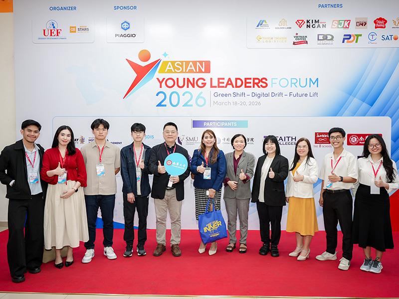 南華大學積極推動國際鏈結與青年人才培育,日前受邀參與由越南胡志明市財經大學(UEF)主辦之「2026亞洲青年領袖論壇(Asian Young Leaders Forum2026)」。本次論壇於3月18日至20日舉行,匯集來自亞洲11個國家、19所大學超過200位師生代表,共同就當代全球議題進行交流與對話,展現跨國學術合作與青年領袖培育的重要平台。
