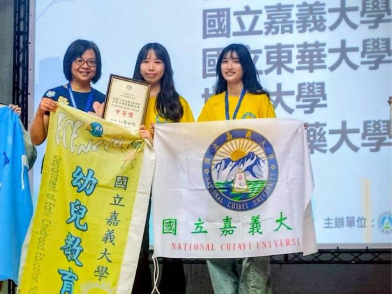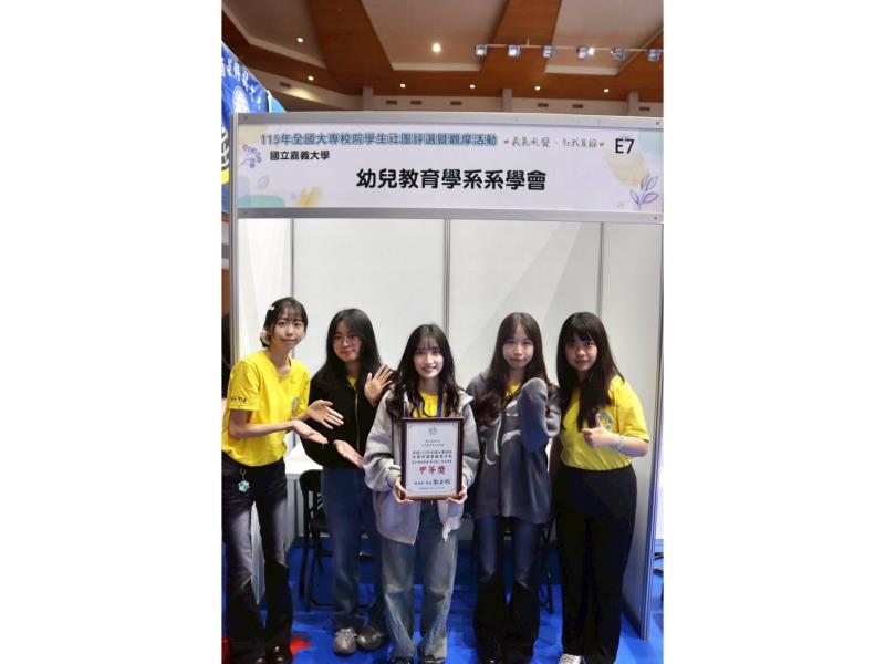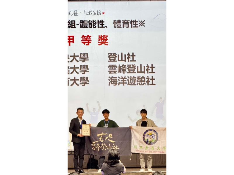 嘉義大學由雲峰登山社、幼兒教育學系系學會及流行音樂坊代表參賽,皆全力以赴展現優異表現為學校爭取佳績。在眾多參賽社團中,雲峰登山社與幼兒教育學系系學會憑藉完善的內部管理、有效的資源整合與具體的成果展現,脫穎而出,分別獲得「體育性社團甲等」及「自治性社團甲等」殊榮,展現嘉大學生社團深厚的組織力與實踐力。