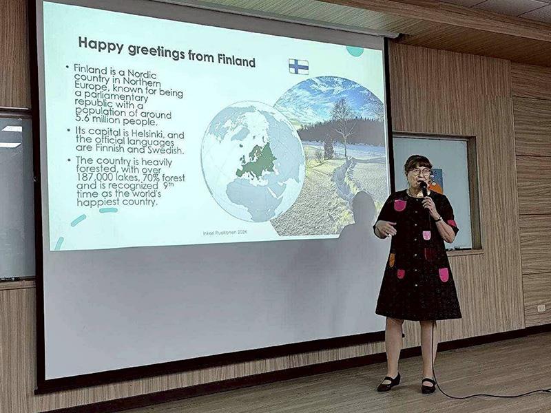 圖03.南華大學邀請芬蘭University of Turku的榮譽教授Inkeri Ruokonen蒞校演講,以充滿活力的互動方式開場。