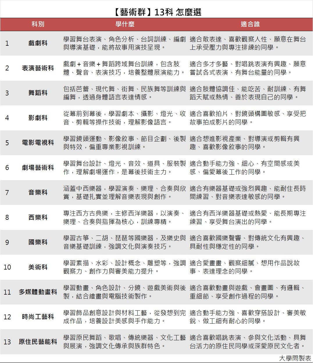 藝術群13科 怎麼選?