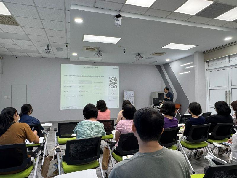 連主任也分享其豐富的海外招生經驗,提供具體可行的學習方向。針對快速發展的人工智慧技術,連主任表示當今AI工具操作日益簡便,無論是英文寫作、翻譯或資料整理,都能在短時間內完成,確實為教學與行政工作帶來極大便利。但同時強調,AI所產出的內容仍需具備專業判斷能力的人員進行檢視與修正,才能確保資訊的正確性與適切性,並非AI可以完全取代。