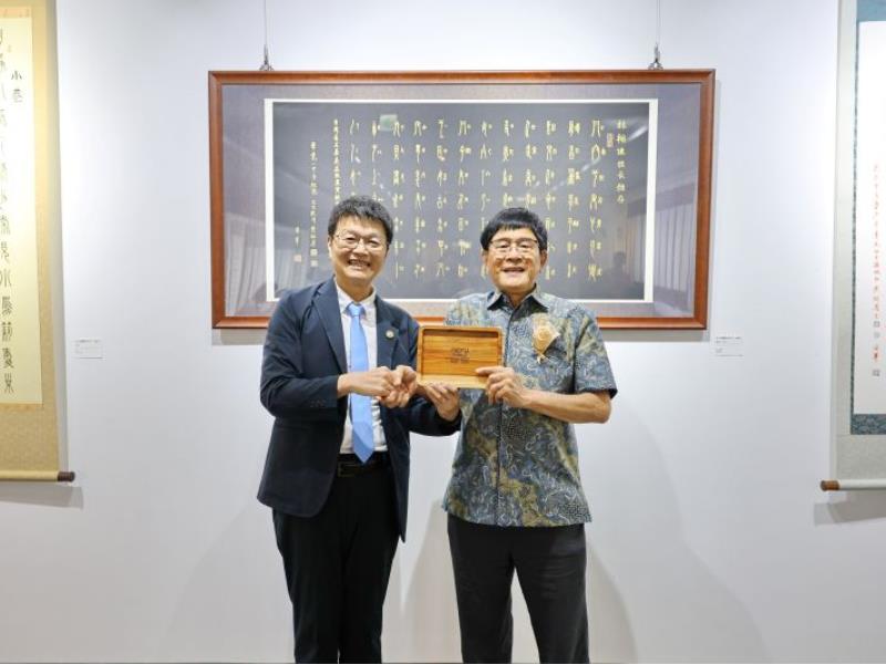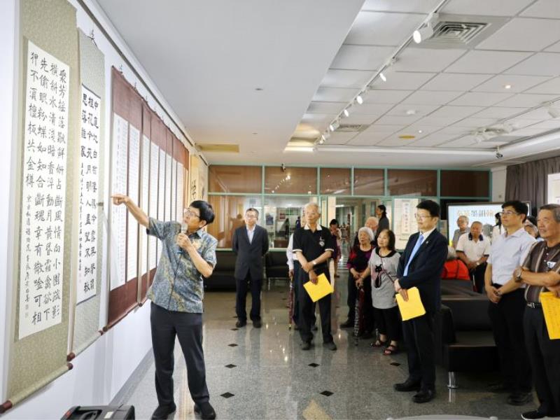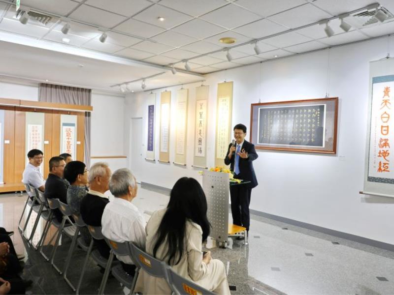 此次捐贈作品充分展現黃昭善老師深厚的書法功力。林翰謙校長於致詞時表示,與黃昭善老師有著深厚且奇妙的緣分,黃老師不僅是森林系的大學長,其女婿更是校長留日期間的同學,孫子也是嘉大校友,祖孫三代都與嘉大結下深厚的師生緣,倍感親切。林校長也提到,上任以來積極推動藝文展覽,希望圖書館能成為師生喜愛的藝文空間,也能讓藝術家的心血結晶不只驚艷當下,更能透過學校典藏流傳後世。