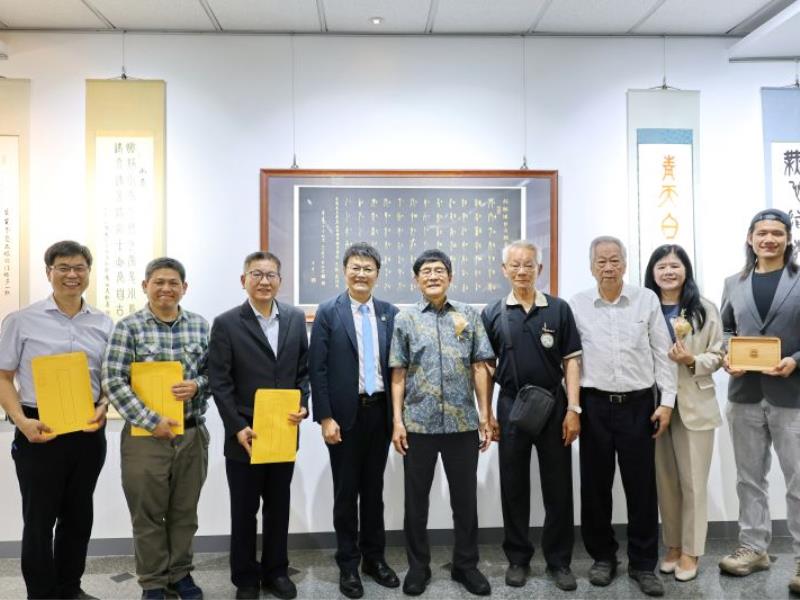 嘉義大學圖書資訊處於4月7日舉行「黃昭善藝術家作品捐贈典禮」,嘉農森林系50級傑出校友黃昭善老師秉持回饋母校初心,將其精心創作之篆書作品《畢業一甲子》無償捐贈嘉大典藏。捐贈儀式由林翰謙校長代表嘉大致贈感謝狀,並回贈由阿里山木材製作的茶盤與玫瑰花,象徵「不忘本」的嘉農精神,見證這場橫跨六十載、溫馨感人的藝術傳承盛事。