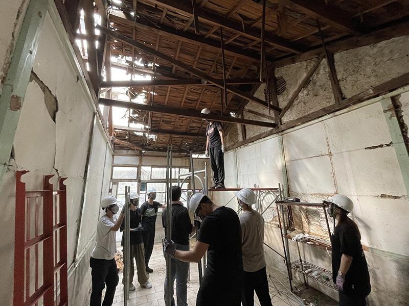 圖04.南華大學建築系深耕「木都」嘉義,產學成果再獲台灣景觀大獎,圖為建築系師生以研究所課程協助屋主進行老屋活化。