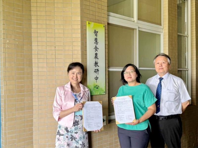圖1:臺北市立南湖高中吉佛慈校長(左)、嘉義大學智慧食農教研中心張心怡主任(右)在嘉大陳瑞祥副校長見證下,簽署「AI科學實驗班」合作備忘錄。