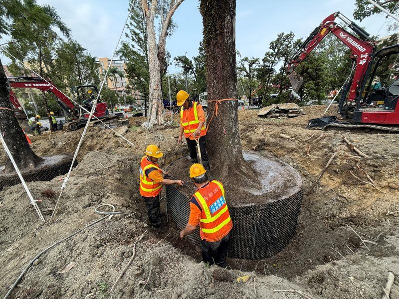 圖1:專業團隊施作老樹移植工程審慎守護樹體。