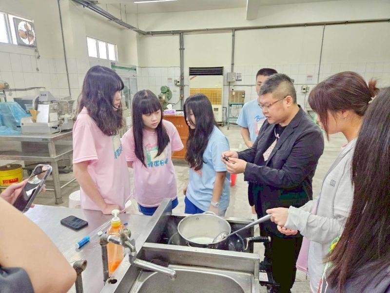 圖2:動科系陳俊吉老師向北門高中師生解說鮮奶實作程序。