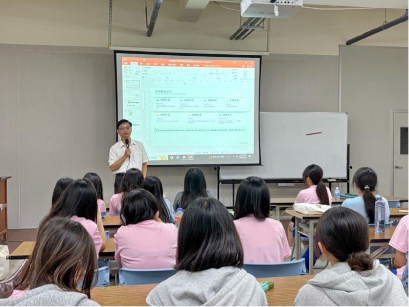 圖1:動物科學系陳祥良老師向北門高中師生進行學系簡介及嘉大助學措施說明。
