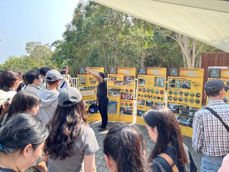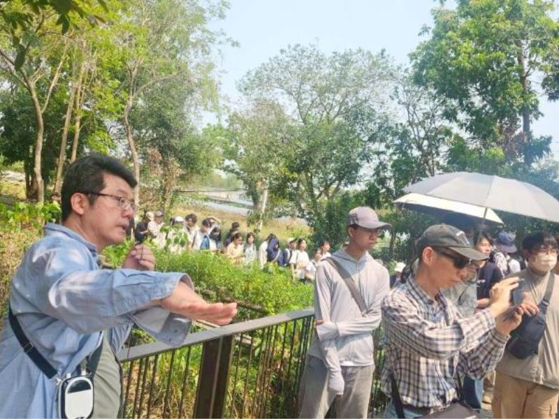 圖2:臺南市虎頭埤生態與人文教育園區水圳綠帶縫補工程陳建州老師講解。