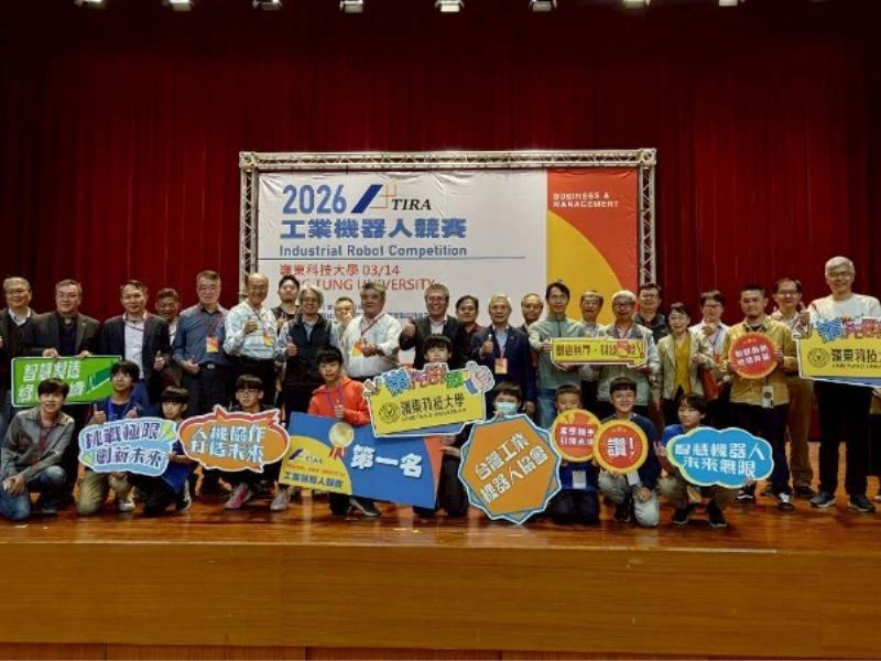 由台灣工業機器人協會主辦、嶺東科技大學承辦的「2026(第21屆)工業機器人競賽」,3月14日於嶺東科大春安校區亞萍館圓滿落幕。來自全台各地國小、國中、高中職及大專院校共165支隊伍參賽,數百名學生齊聚一堂同場競技,透過機器人技術與創意設計的交流,展現台灣智慧科技教育向下扎根、向上接軌產業的蓬勃能量。