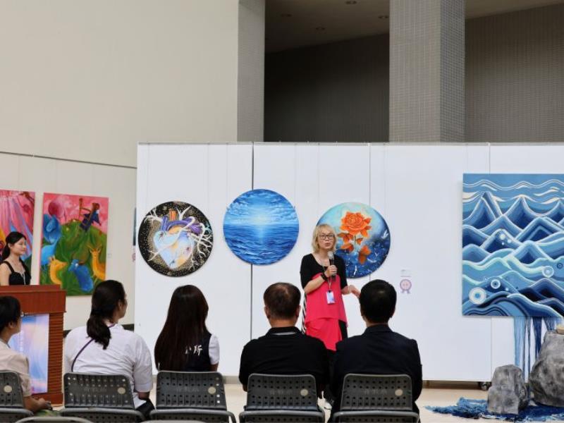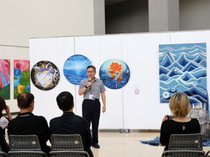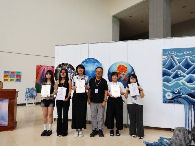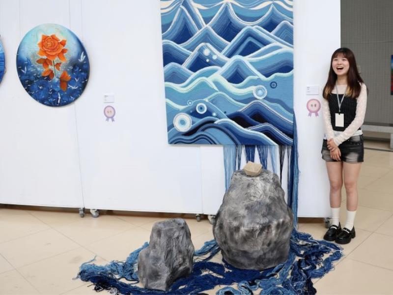 視藝系胡惠君主任指出,近年持續打破媒材與組別界線,由傳統中西繪畫、應用藝術及電腦設計三組間進行跨組整合,並推動不同專長教師共同指導制度,引導學生突破單一媒材限制,發展更具整合性的創作思維。視藝系亦透過高教深耕計畫與跨域學程資源,邀請業界專家、國際學者及資訊領域教師開設人工智慧應用、工藝手作與多元工作坊,並結合中文、應用歷史等相關學系,深化作品的文化內涵與論述能力。胡主任表示,非藝術科班背景學生的加入,為創作現場帶來不同的思考路徑與文化視角,讓作品在形式之外更具內容張力,也更貼近當代藝術跨域融合的發展趨勢。