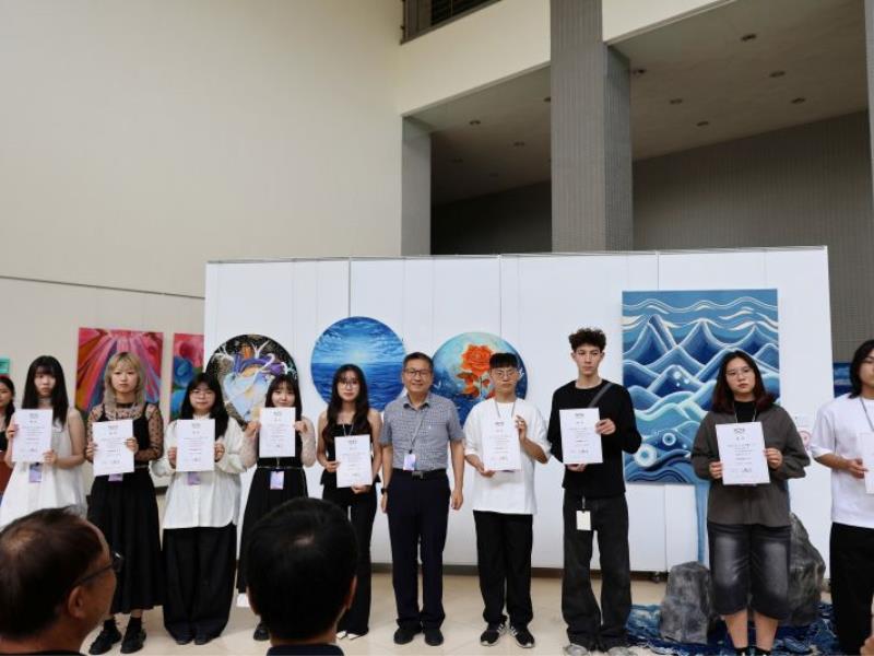 圖7:廖瑞章院長頒獎表揚獲獎學生,肯定學生在藝術創作與跨域學習上的亮眼表現。
