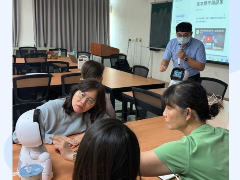 本次工作坊由系上教師共同參與,透過凱比機器人進行情境模擬與互動設計,讓教學從傳統示範轉向更具參與感與臨場感的學習模式。教師在短時間內即完成操作設定,展現護理專業結合科技應用的高度適應力。