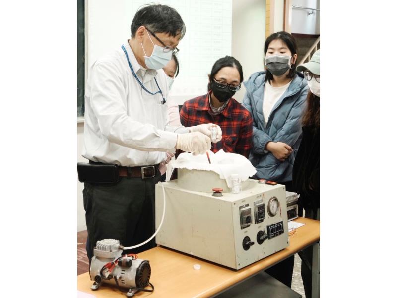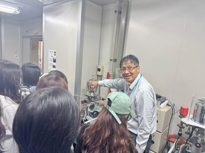 圖2:電物系余昌峰老師對學生簡介半導體實驗-旋轉塗佈。