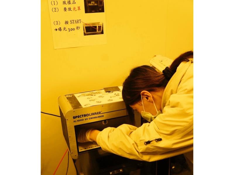 圖4:學生在黃光室進行半導體實驗-微影製程(曝光)。