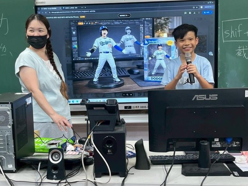 兩天課程從貼近生活的AI應用出發,師生引導學童操作Google智慧鏡頭,體驗影像辨識與即時翻譯,進而認識ChatGPT、Gemini、Copilot、Suno與Luma AI等生成式AI工具,學習如何下指令並轉化為具體成果。從英雄角色設計、偶像出道海報製作,到動畫生成與AI配樂創作,孩子們一步步完成專屬的數位作品,在實作中累積信心,也在創作中激發想像力。本次活動亦作為竹苗地區生成式AI教育推廣之示範場域,未來將持續擴展至更多學校,建立可複製之AI科普教學模式。