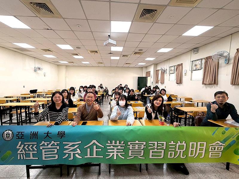亞洲大學經營管理學系舉辦「114學年度第2學期企業實習說明會」,強化學生就業競爭力並縮短產學落差,邀集半導體、數位科技、醫療、零售及金融等五大領域指標企業到校,提供即將升大四學生多元跨域的實習機會,協助提早規劃職涯方向。