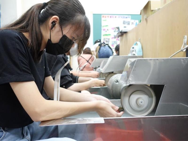 圖3:透過拋磨技術練習,學生學習掌握玉石表面處理技巧,體會工藝創作的專注與精準。