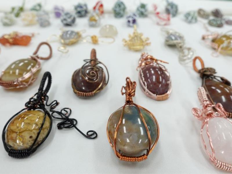 圖4:運用玉石與金屬編織技法製作飾品,展現課程兼具手作實務與美感創新的教學成果。