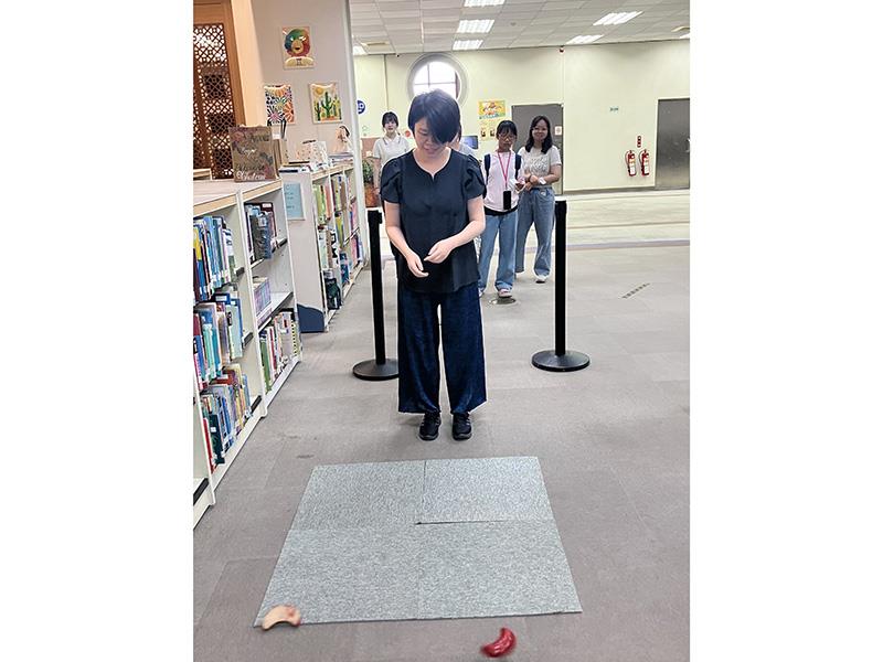 圖04.南華大學響應世界閱讀日,辦理「借書擲筊大賽」推廣閱讀,讀者擲出聖筊獲好禮。