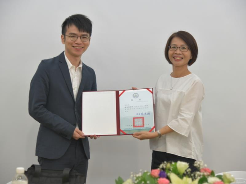 本校人文與社會學院黃惠禎院長致贈聘書