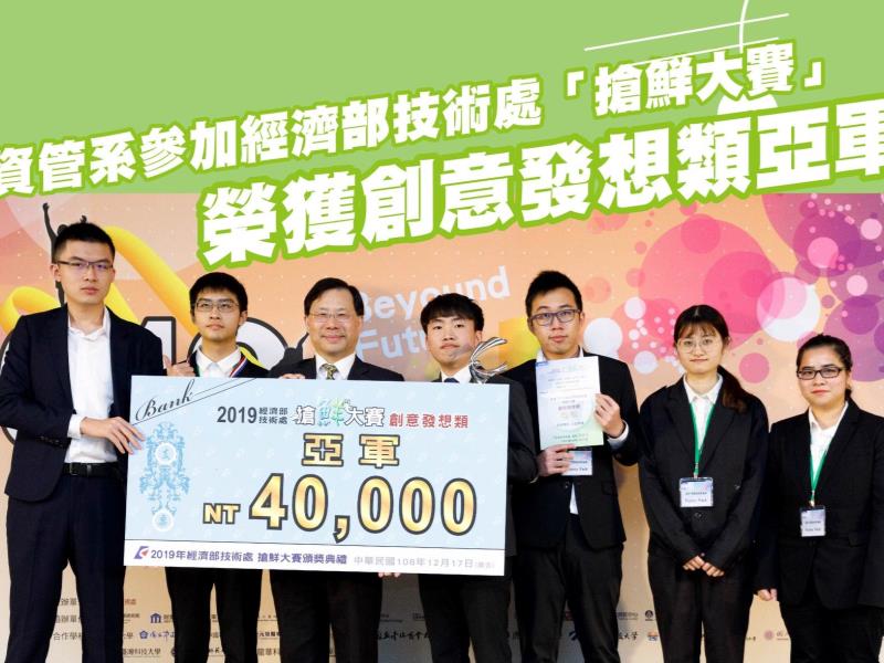經濟部技術處為鼓勵青年創新創業,推動「搶鮮大賽」競賽活動,12月17日假臺灣大學鄭江樓舉行頒獎典禮。今年共有來自北、中、南之大專院校計256隊參選,經歷公正嚴密的審查,歷經初賽、複賽到決賽選拔出優秀作品,呈現運用科技專案成果呈現出的創新創意。德明科大資管系再次傳出捷報,榮獲創意發想類亞軍。